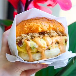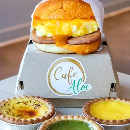 One of our go to cafes for brunch/snacks! We've been here several times by now, and their food and drinks are consistently good! My favorites are the molten egg lava piggy bun - super cute and runny egg custard inside that's creamy not too sweet! I always get this one. For a meal, the pineapple bun sandwiches are really good! The shrimp one has grilled shrimp with fluffy scrambled eggs and sweet mayo sauce in a pineapple bun - highly recommend! We also really loved the green onion twist bun with scrambled eggs - they make their eggs so fluffy! Wasn't as impressed with their egg tart though - pretty standard. For the drink, their lychee mojito was good and refreshing, but our favorite is their black sesame latte - a lot of places make this too heavy or sweet, which makes it hard to drink the whole thing, but cafe aloe makes this one perfectly without losing the black sesame flavor! I think this one has the perfect balance of black sesame and coffee. Service is usually pretty fast! They also do a lot of pop ups which can be fun (but expect long lines during pop ups). The interior is also super cute although lately there have been a lot of flies near the entrance. Overall, a super unique cafe to stop by for Asian pastries/snacks and coffee!
